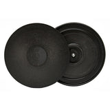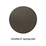 Spin-on discs are 6" diameter and made of 1/4" thick plastic composite material. They come with a 1/4"-20 thread on the backside to easily screw into the right shaft of the 6" CabKing cabbing machine and the 8" CabKing cabbing machine. You can also use them on other cabbing machine brands that accept a 1/4"-20 thread. One 6" sponge pad is included to provide a cushion ideal for polishing cabochons!